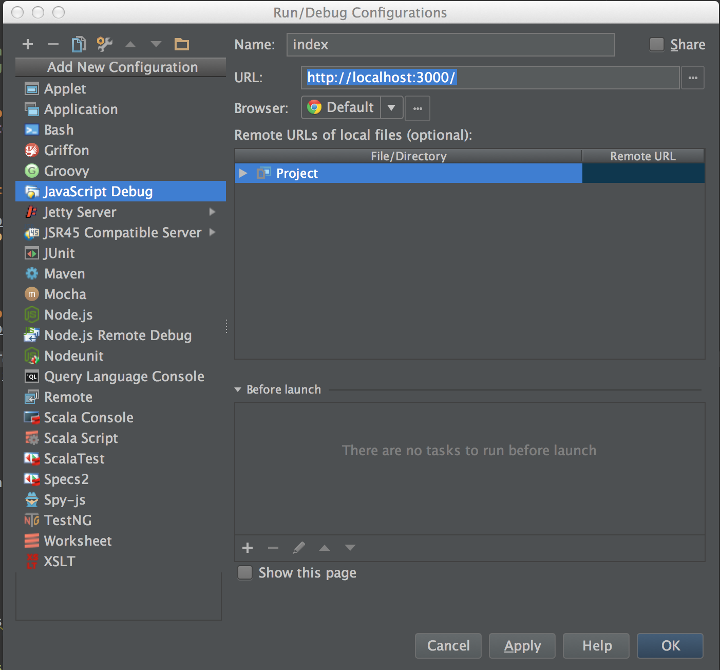 Create a Javascript Debug Configuration: